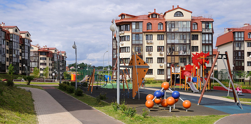 Малоэтажный квартал из 23 домов выполненный в традиционном европейском стиле: фасады тёплого песочного цвета, красные металлочерепичные крыши, развитая инфраструктура и благоустроенная территория.