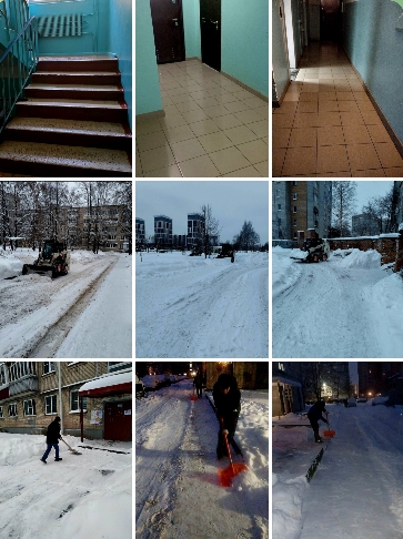 — расчистили от снега с привлечением техники дорожное покрытие, входные группы и пешеходные дорожки: