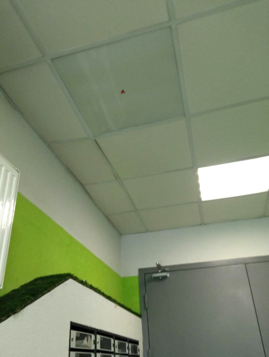 — восстановили потолочные панели в холле