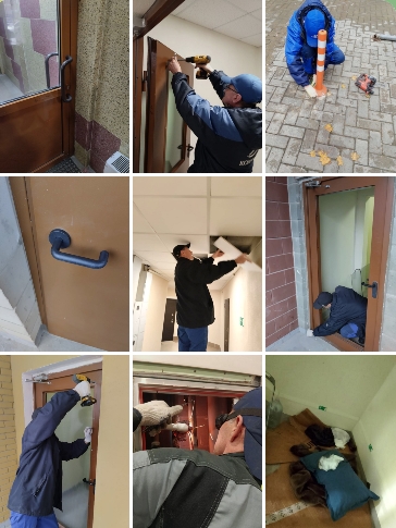 – разбитые стёкла дверей переходных балконов на 7 этаже, Северное шоссе 24 и Северное шоссе 30