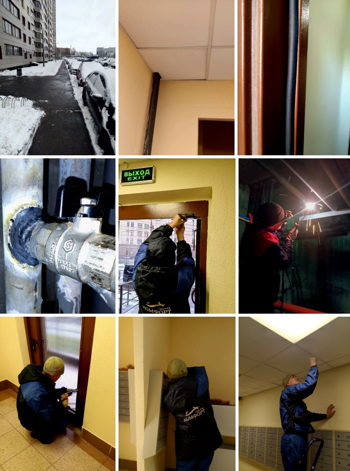 — установили резиновый уплотнитель входной двери, Северное шоссе 20 и двери переходного балкона, Северное шоссе 32