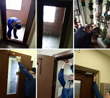 – разбитое стекло, доводчик и отрегулировали входную дверь, Северное шоссе 34
